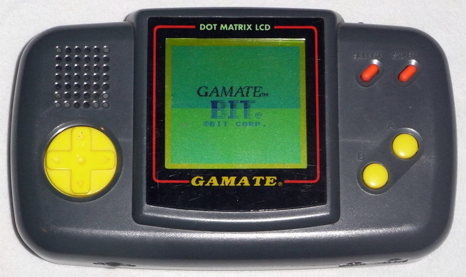 The Gamate is a handheld console similar to the Game Boy (although not an exact clone) released by Bit Corp in 1990. Released as Super Child Prodigy in China and Super Boy in Taiwan. Around 50 games were published by Bit Corp, but after they went out of business in 1992, UMC continued to produce consoles and games, releasing about 20 further games for the system. A “color” version was also announced at CES but no information is known about the color system.[4] Many of its games were developed by Gamtec as well as Hengmao Electronics.