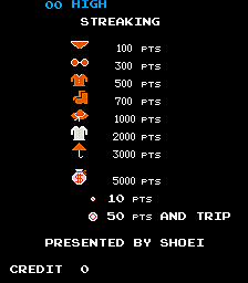 Streaking is a hack of Pac-Man released in 1981 by Shoei, a Japanese company who would bootleg games and sometimes license them to be released in other countries. The game would later be released two other companies in the United States as Streaker and Stripper.