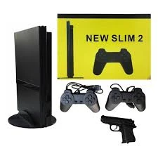 New Slim 2 is a famiclone which mimics the appearance of a "silm" PlayStation 2 model. It comes with two controllers, light gun, and (Optional) a multicart featuring 9999999 games.