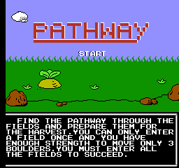 Based on the alternate revision of Pathway (featuring no title screen); the girl is replaced with a man wearing a sunhat. This revision is only known to appear on a handful of consoles (such as the Millennium Super Arcade 110-in-1), but appears to predate the more common version(s) seen below.