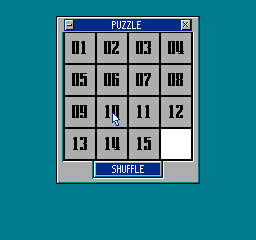 A basic slide puzzle with number tiles designed to resemble a Windows program. The game defaults to a "Low" difficulty mode, using a 15-tile layout. By clicking the button in the top-left corner, the player can select a "High" mode with 63 tiles; however, the game instantly freezes upon moving a tile in this mode. The top-left button is disabled in some revisions, presumably to prevent access to the broken "High" mode.