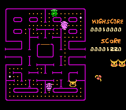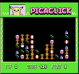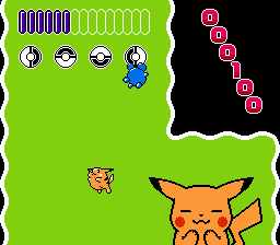 As the name would suggest, this is a copy of Pac-Man, which itself had a licensed/unlicensed NES port made by Tengen. However, the engine for this game seems to be created from scratch, with the game being slower paced than in that port. The graphics and sounds are different, with Pac-Man being replaced with Pikachu and the ghosts being replaced with Vileplume. The music track used here is an 8-bit rendition of 'Train flies fast".