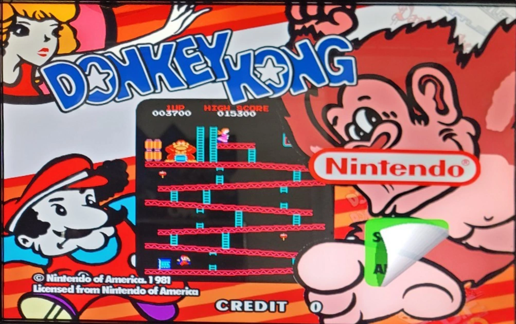 Menu preview sequence for Donkey Kong, falsely claiming the game as being licensed.