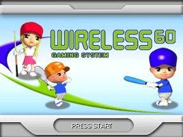 The Wireless 60, or Wireless 60 Gaming System, is a multi-game plug and play video game console released by Kids Station Toys in North America. It, like the Zone 60, is also known to have been produced as early as 2010. The Wireless 60 comes bundled with two Wii Remote-like controllers using the same sort of fake "motion control" as the Zone 60 and Zone 100, an AC adapter, composite A/V cables, and the following controller attachments: 1 golf club attachment, 1 baseball bat attachment, 2 ping pong paddle attachments, and 2 tennis racket attachments. It is unclear if the Wireless 60 was released after the Zone 60 or Zone 100 in particular, although the ROM of the system containing leftover menu graphics used in the Zone 60/100 suggests that it was produced after either of those consoles. The Wireless 60 was released in both white and black colors, the latter only confirmed to have been released in Canada.